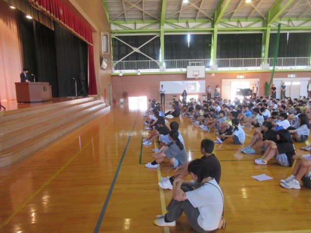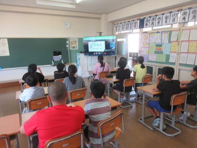 式の後、各教室に戻り、ミートで生徒指導や夏休みのプールの約束の話を聞きました。