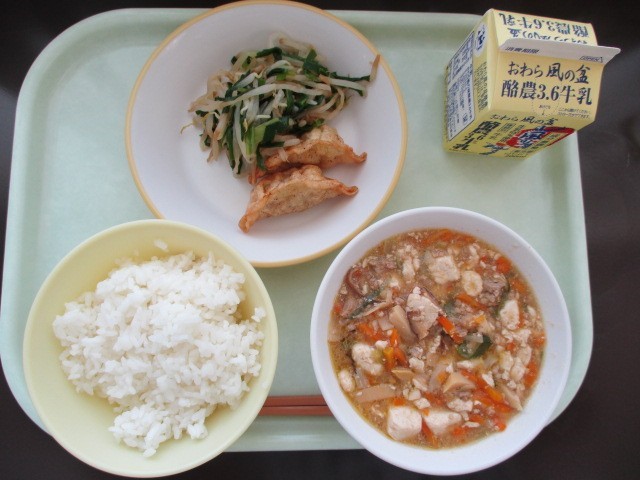 8月28日(木)の給食 公開日 2025/08/28 更新日 2025/08/28 今日の給食 今日から2学期の給食が始まります。朝から「久しぶりの給食が楽しみ!」と話す子供たちが何人もいました。 献立は、ごはん、揚げ餃子、香味和え、マーボー豆腐、牛乳です。 中華風の味付けがよくご飯に合い、おいしくいただきました。