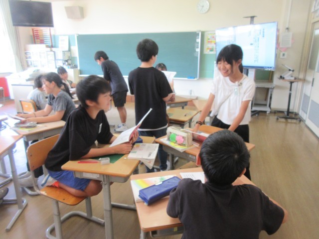 6年生 国語 対話の練習 公開日 2025/09/05 更新日 2025/09/05 6年生 国語科「一番大事なものは」の学習で、自分のことを話したり友達の話に質問したりするなど、対話の練習をしました。
