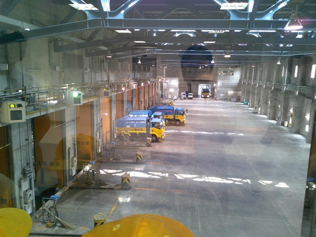 子供たちは、次々とごみ収集車が入っくるところを上から見ながら、車が何番のプラットホームに止まるか、興味津々でした。