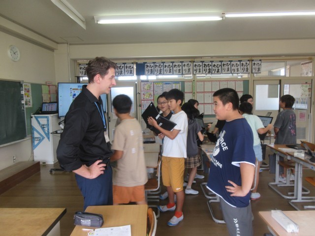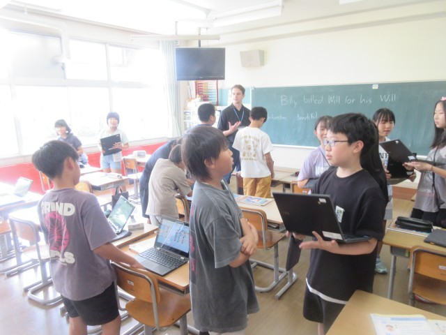 6年生 外国語活動 公開日 2025/09/16 更新日 2025/09/16 6年生 外国語活動では、自分が行きたい国とその理由(観光、食事など)について英語で話をしています。友達やALTの先生との会話を楽しんでいます。