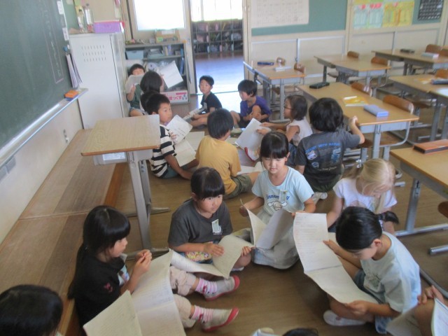 写真は、教室でのグループ練習の様子です。体育館で一度経験したことで、より大きな声が出せるようになった子供が増えてきました。