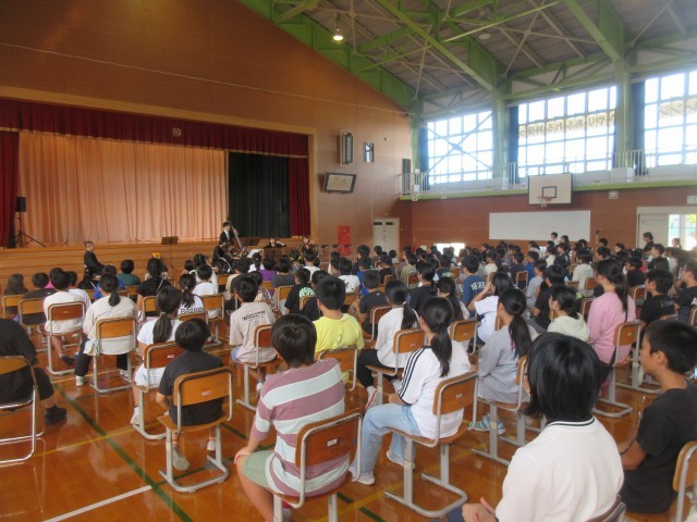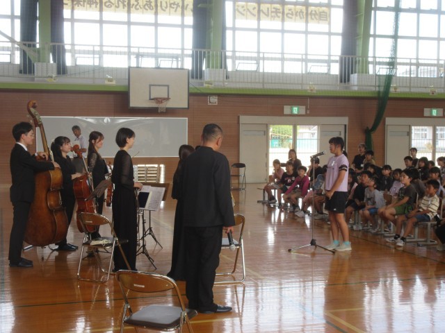 【6年生】 桐朋オーケストラアカデミー出向演奏会 公開日 2025/10/01 更新日 2025/10/01 6年生 桐朋オーケストラアカデミー出向演奏会では、バイオリンやチェロ等、弦楽器のすてきな演奏を聴くことができました。楽器の大きさによって音の高低が違うことを知り、実際に自分の耳でその違いを実感することができました。