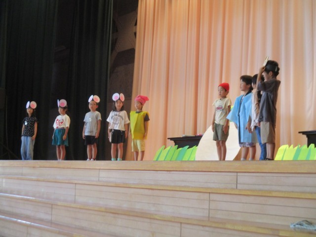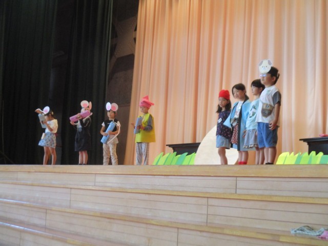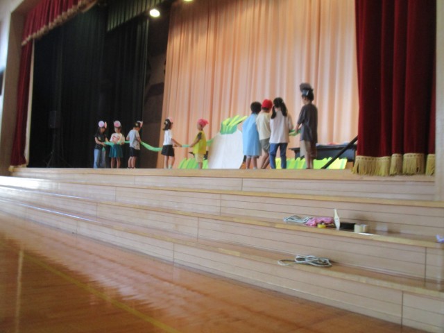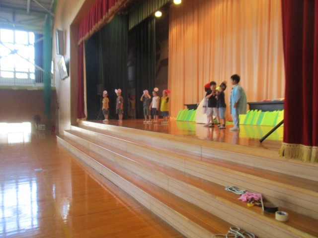 教室での練習の後、ステージで、校長先生や教頭先生、教務主任の先生に、今できる発表を見ていただきました。