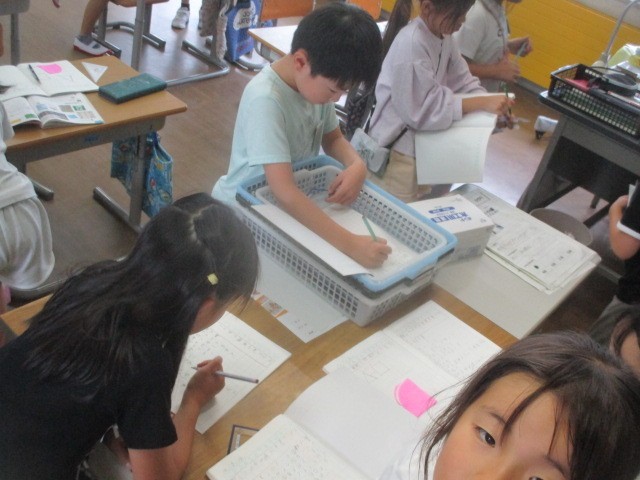 算数科では、三角形と四角形の学習をしています。今日は、三角定規を使って、教室にある直角のものや場所を探しました。子供たちは、「直角に見えるけど、ちょっと丸くなっているから違ったよ」と、教室のいろいろな場所から直角を探し、実際に三角定規を当てて調べていました。