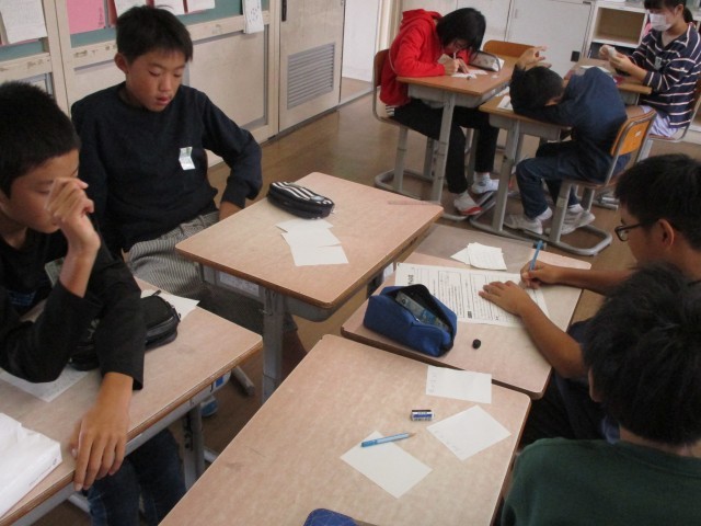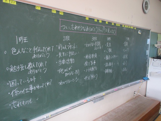 「ありがとう」を進んで言えるようになるために、グループで「つい忘れてしまいそうなありがとう」の場面を見つけました。