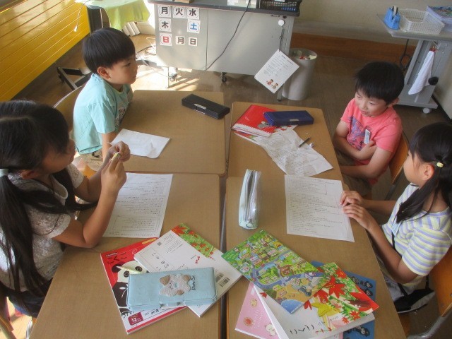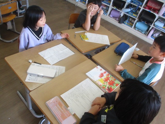 国語では、「そうだんにのってください」の学習をしています。今日は、グループで相談者を決め、自分で決めた話題を実際に相談しました。聞き手になった子供たちは、「〇〇はどうですか」「~~だから〇〇がいいと思います」など、順番に考えを出し合っていました。どのグループもお互いの話をよく聞いて話し合いを進めることができました。