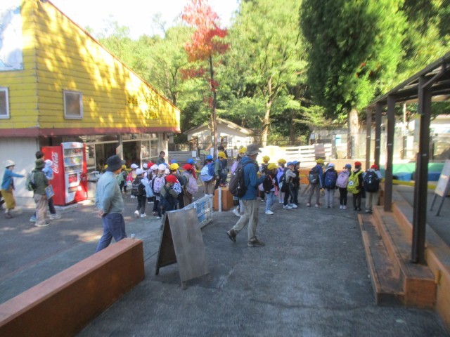 ファミリーパーク到着後、まず、1年生だけで、「ふれあい動物園」で、グループ活動を行いました。