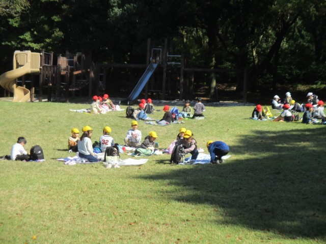 2年生と園内を見て回った後は、待望の昼食タイムです。