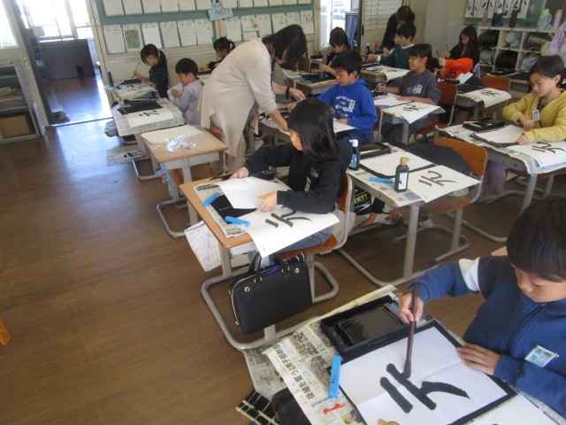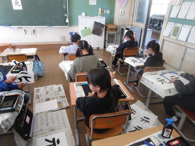 【3年生】書写 公開日 2025/10/31 更新日 2025/10/31 3年生 3年生書写の学習です。 「元」という字を曲がりやはねと意識して丁寧に書いています。丁寧に書く学習を通して、「集中する力」を育てていきたいと思っています。