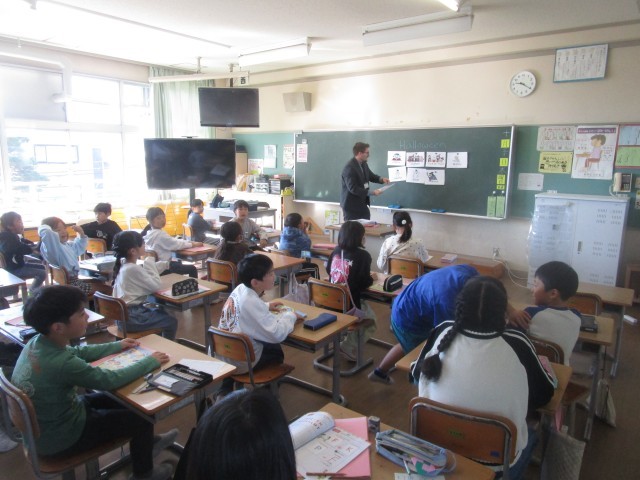 【3年生】外国語活動 公開日 2025/10/31 更新日 2025/10/31 3年生 外国語活動では、ALTの先生がアメリカのハロウィンについて教えてくれました。ALTの先生の発音を繰り返したり、折り紙のカボチャの飾りを作ったりしてハロウィン文化について理解を深めていました。