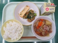 12月3日(水)の給食 公開日 2025/12/03 更新日 2025/12/03 今日の給食 今日の献立は、ごはん、大豆のみそからめ、ゆかり和え、かぶと肉だんごのポトフ、牛乳です。 ポトフに入っているかぶは、よく煮込んであり、とても柔らかくて甘かったです。 体が芯から温まりました、