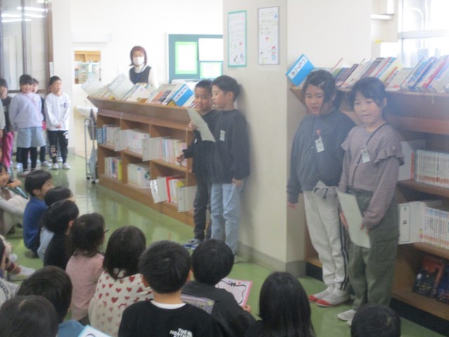 生活科の学習で作ったうごくおもちゃを遊んでもらうために、1年生さんを「おもちゃランド」に招待しました。はじめの言葉では、1年生さんが来てくれたことへの感謝の気持ちや楽しんでもらいたいという思いを伝えることができました。