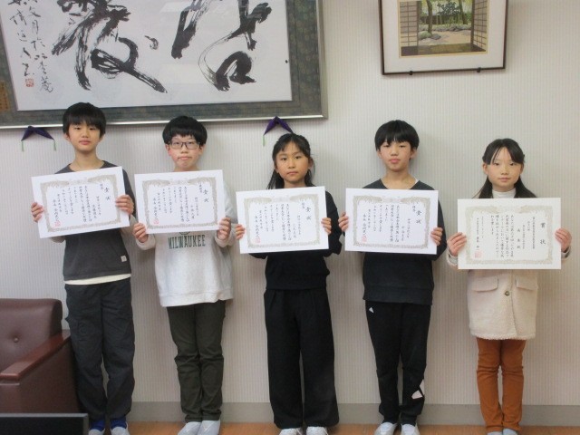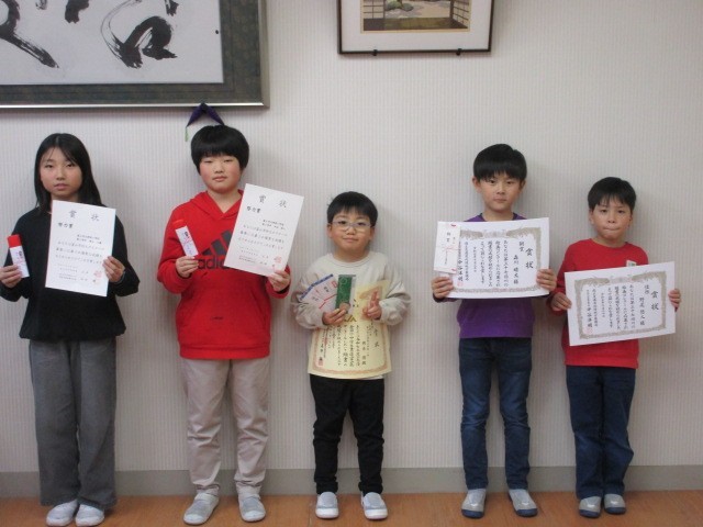 学校外でがんばっている神保っ子の授賞伝達を行いました。作文や習字や絵画、思考大会等で力を発揮しました。