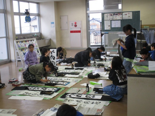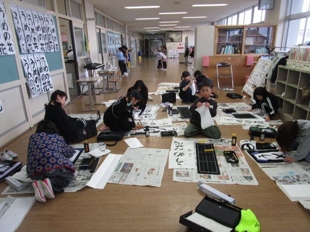 【3年生】書き初め大会 公開日 2026/01/08 更新日 2026/01/08 3年生 全校一斉で行われた書き初め大会では「うめの花」と書きました。 冬休みにたくさん練習してきた成果を発揮し、出来上がった作品を見て満足そうな子供たちでした。