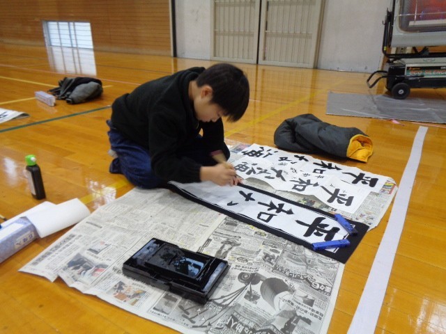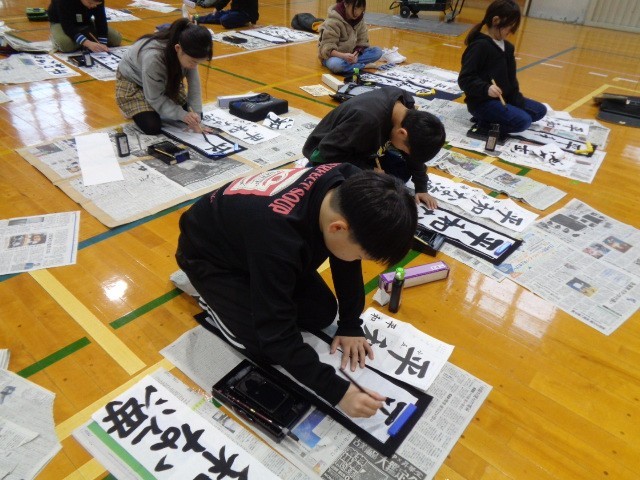 始業式の後、体育館で校内書き初め大会を行いました。