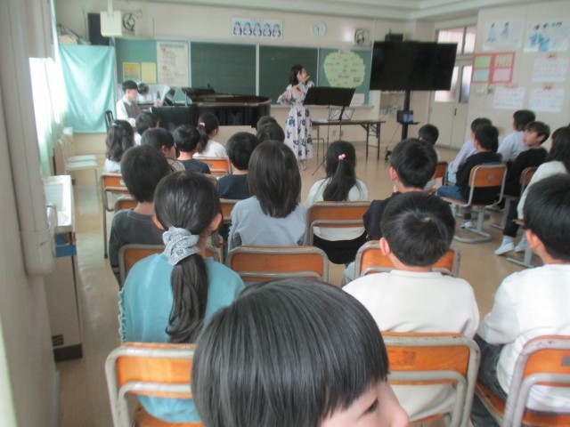 フルート奏者の方は神保小学校の大先輩でした。最後にはみんなで「ジェントルウインド」と校歌を歌いました。