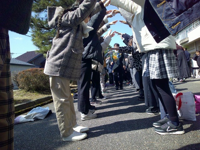 最後は、卒業生の未来が輝かしいものになることを願って、みんなで花道をつくって見送りました。