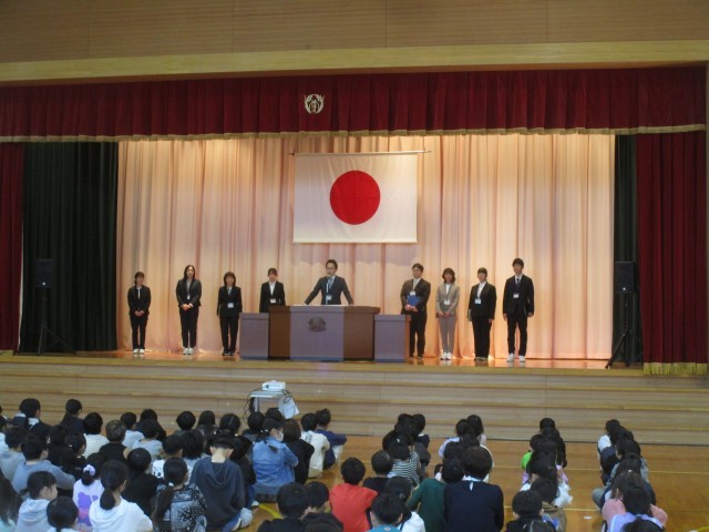 令和8年度がスタートしました。着任式では、新しく神保小学校に来られた教職員の方々の紹介、始業式では校長先生のお話がありました。校長先生から、思いやりをもち、自分で考えて一歩を踏み出す神保っ子を目指しましょう」というお話がありました。進級した子供たちは、目をつなぎしっかりと話を聞いていました。
