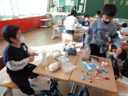 【1年生】生活科 公開日 2020/11/20 更新日 2020/11/20 1年生 見つけた秋のもので、自分の作りたいおもちゃを作り始めました。1年生には難しいことも多いですが、一生懸命がんばっています。