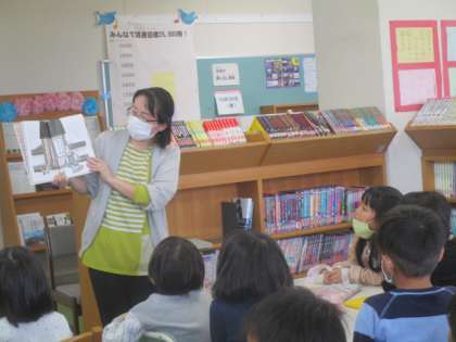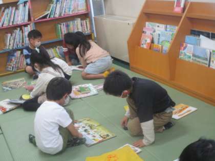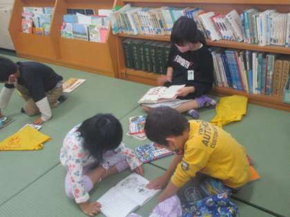 図書室では、『一休さん』を読み聞かせをしてもらいました。とんちのきいた返答に子供たちからもなるほど、頭いいねなどのつぶやきが聞こえてきました。
