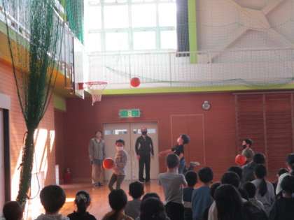 【2年生】君がスターだ集会 公開日 2020/11/24 更新日 2020/11/24 2年生 今日は自分の特技を発表する「君がスターだ集会」がありました。2年生からも何人かが発表してくれました。 バスケでは制限時間に何度もシュートをきめていました。かっこよかったです!