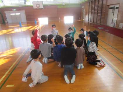 こおり鬼としま鬼の様子です。こおり鬼では、特別ルールとして、捕まった人はおりに入れられて凍るそうです。子供たちは楽しそうに活動していました。