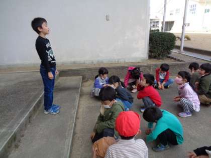 次は赤団が考えてくれた逃走中です。「復活ボール」を見つけ持ってくると、何人か復活できます。持ってくる子はまさにヒーローでした。終わりの言葉までしっかり話すことができました。またごほうび集会ができるようにみんなでがんばりましょう!