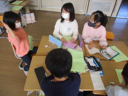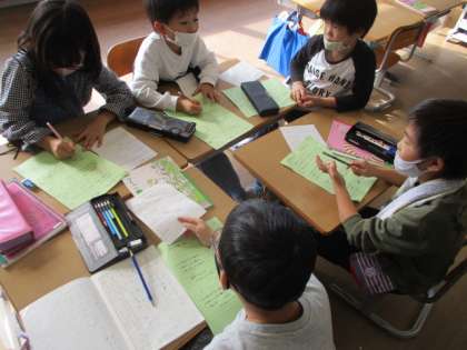 友達の相談事を聞いて、自分の意見を伝える学習でした。友達の話に身を乗り出して、一生懸命聞いています。