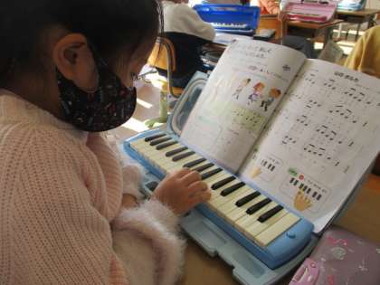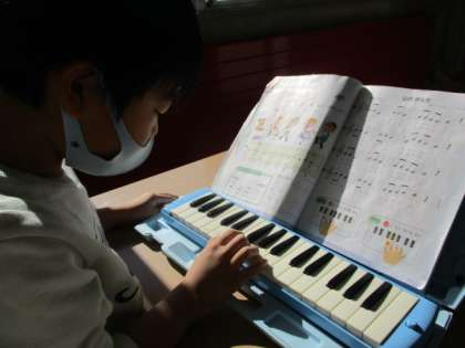 【2年生】鍵盤ハーモニカ練習 公開日 2020/11/25 更新日 2020/11/25 2年生 鍵盤ハーモニカの、指の動きの練習をしました。指の運びに気を付けて、正しい指番号で弾けるよう、何度も練習を重ねました。
