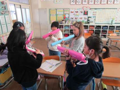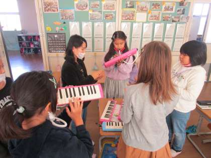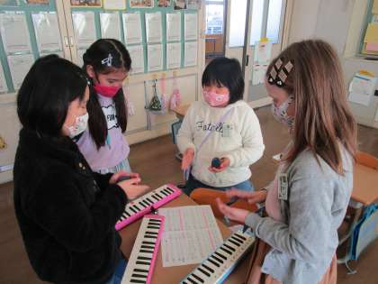 休み時間にも感謝ふれあい集会に向けて練習を続けています。本番前の最終チェックを友達同士でアドバイスしながら楽しく行っていました。練習を重ねるたびに、みんなで合う感じを掴んできているようです。明日もそんな演奏になることを期待しています。