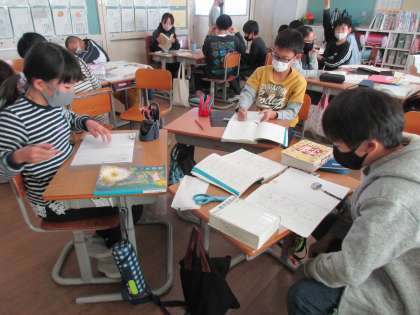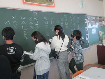 昨日に引き続き、カンジー博士の暗号解読を学習しました。問題を解いた後は、自分たちで問題を作りました。思考を働かせて、多くの問題ができていました。
