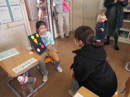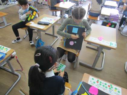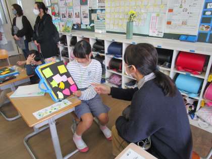 今日は、学習参観で外国語活動「What's this?」の学習を行いました。友達や家の人のことをもっと知るために、クイズを出したり答えたりしてコミュニケーションを図りました。はじめは表情が硬かった子供たちでしたが、やり取りをする中で笑顔や自分の気持ちを言葉や体で表す場面が増えていました。家でも是非「What's this?」クイズをしてみてほしいと思います。