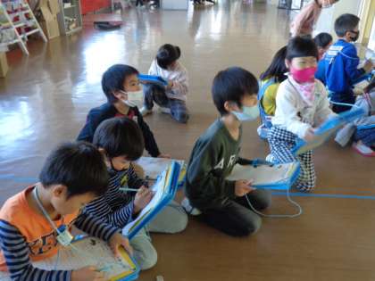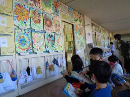 【1年生】友達の絵を鑑賞しよう 公開日 2020/12/01 更新日 2020/12/01 1年生 友達の絵の素敵なところを見つける学習をしました。「花びらの形が全部違う」「いろんな色があってきれい」など、それぞれのよさを上手に見つけていました。