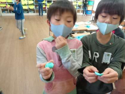 教室で、様々な「でこぼこ」を見つけて、粘土に写し取る学習をしました。子供たちはでこぼこを見つける天才で、次々に「先生見て見て!」と見せてくれました。