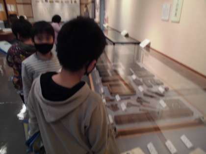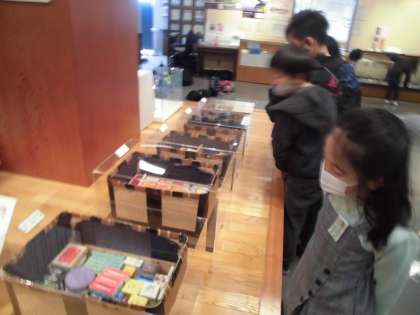 民俗資料館や売薬資料館には、初めて見る道具や物があり、子供たちは興味をもって見たり気づいたことをメモに取っていました。