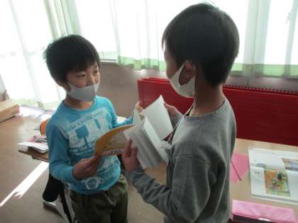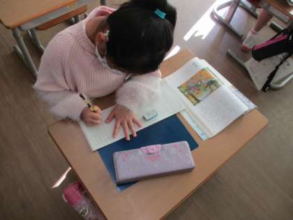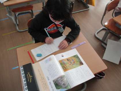 道徳では、「みんなで仲良くすごすにはどうしたらよいか」というテーマで話をしました。自分の思いをノートに書いたり、友達との交流で自分の思いを伝え合いました。