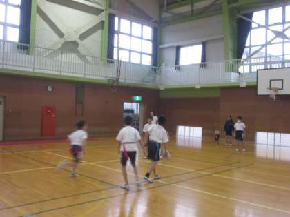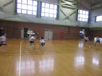 タグラグビーの学習の様子です。今日で最後の試合でした。