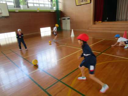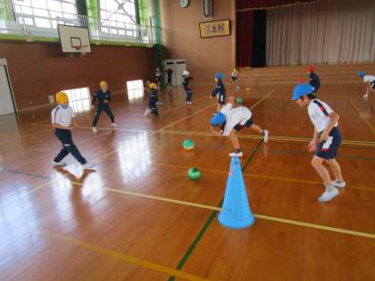 体育科「フロアボール」の学習では、ボールを弾くことになれる活動を行いました。ペアの友達と続くようにボールを弾く強さを考えたり、相手が取りにくい位置にボールを弾いたりしました。今日は、1対1のミニゲームを行いましたが、次からは2対2でゲームを行います。寒さに負けず、楽しく体を動かしていきましょう。