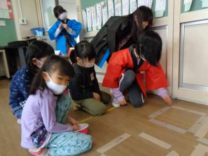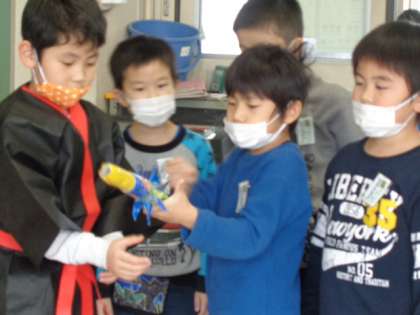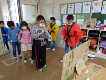 今日は2年生さんに、「うごくおもちゃランド」に招待してもらいました。楽しい手作りおもちゃに子供たちは大喜びで遊びました。