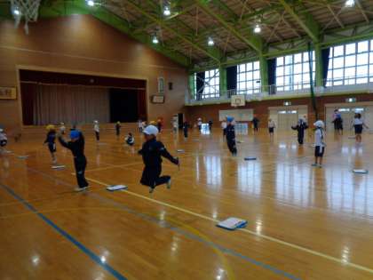 今日から縄跳びの学習が始まりました。「構え」や「前両足跳び」の上手な跳び方のポイントを教えてもらいました。休み時間も早速縄跳びを跳ぶ姿が見られました。