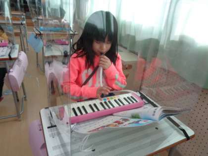 「ひのまる」の鍵盤ハーモニカの練習を始めました。「ラ」の音まであり、なかなか難しいですが、よく頑張っています。