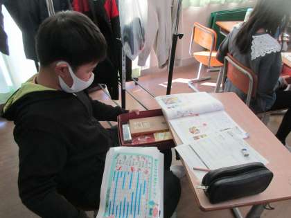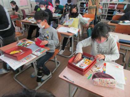 家庭科では、整理整頓について学習しました。今日、身近なものとして、自分のお道具箱の整理整頓をしました。学習後には、「どこに何があるか分かりやすくなった」「きれいになって嬉しい」等の感想を抱いていました。冬休み、ぜひ家の整理整頓もしてみましょう。