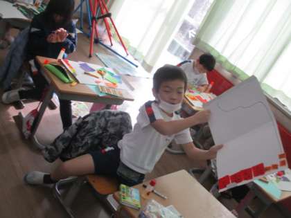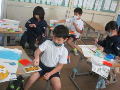 図画工作科では、自分だけのオリジナルのすごろくのコースを作る「わくわくすごろく」を行っています。