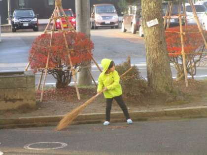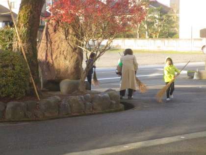 朝の時間に落ち葉掃きに行く子供の姿が見られました。毎日5年生が落ち葉掃きに行く様子を見て、自分もやってみたいという思いを膨らませていたみたいです。寒い中自分より大きなほうきを一生懸命持ちながら掃除をする姿が見られました。