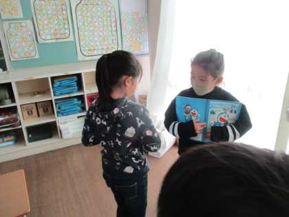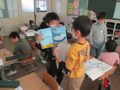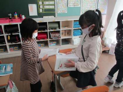 算数の学習では、かけ算を用いて答えを求める過程を友達と比べました。自分とは違う意見を知ることで、答えの求め方が何通りものやり方があることに気付きました。