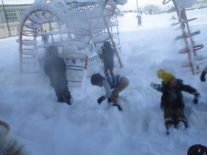 なかよしタイムに外に出て雪遊びをしました。雪合戦や雪だるま作り、そりなどをして遊びました。今年は大雪でグランドにもたくさんの雪が積もりました。冬ならではの楽しみを満喫してほしいです。