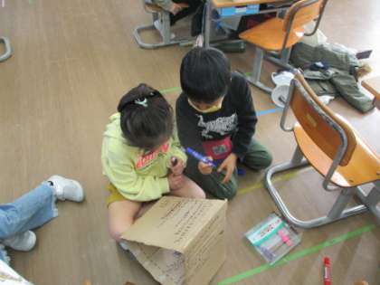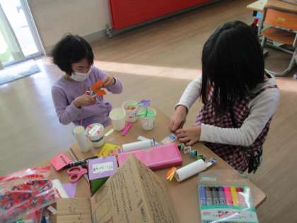 明日はおもちゃフェスティバルに1年生を招待します。子供たちはどうしたら1年生に楽しんでもらえるか考えて準備を進めていました。