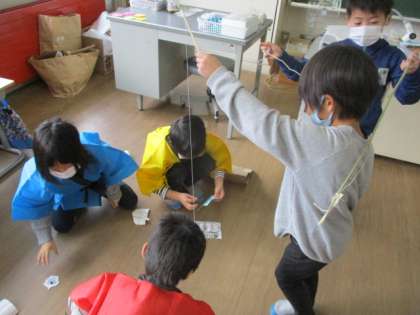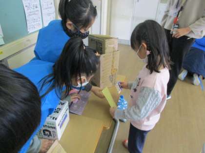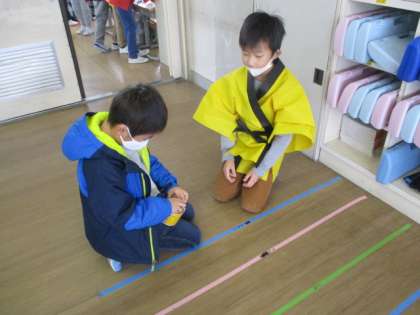 1年生さんに、一生懸命ルールや遊び方を説明しています。