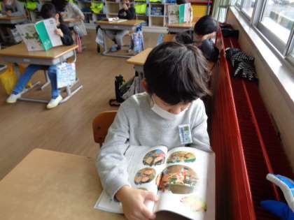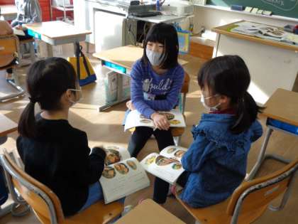 今日は「わらしべちょうじゃ」を読んだ感想をいろんな友達と伝え合いました。